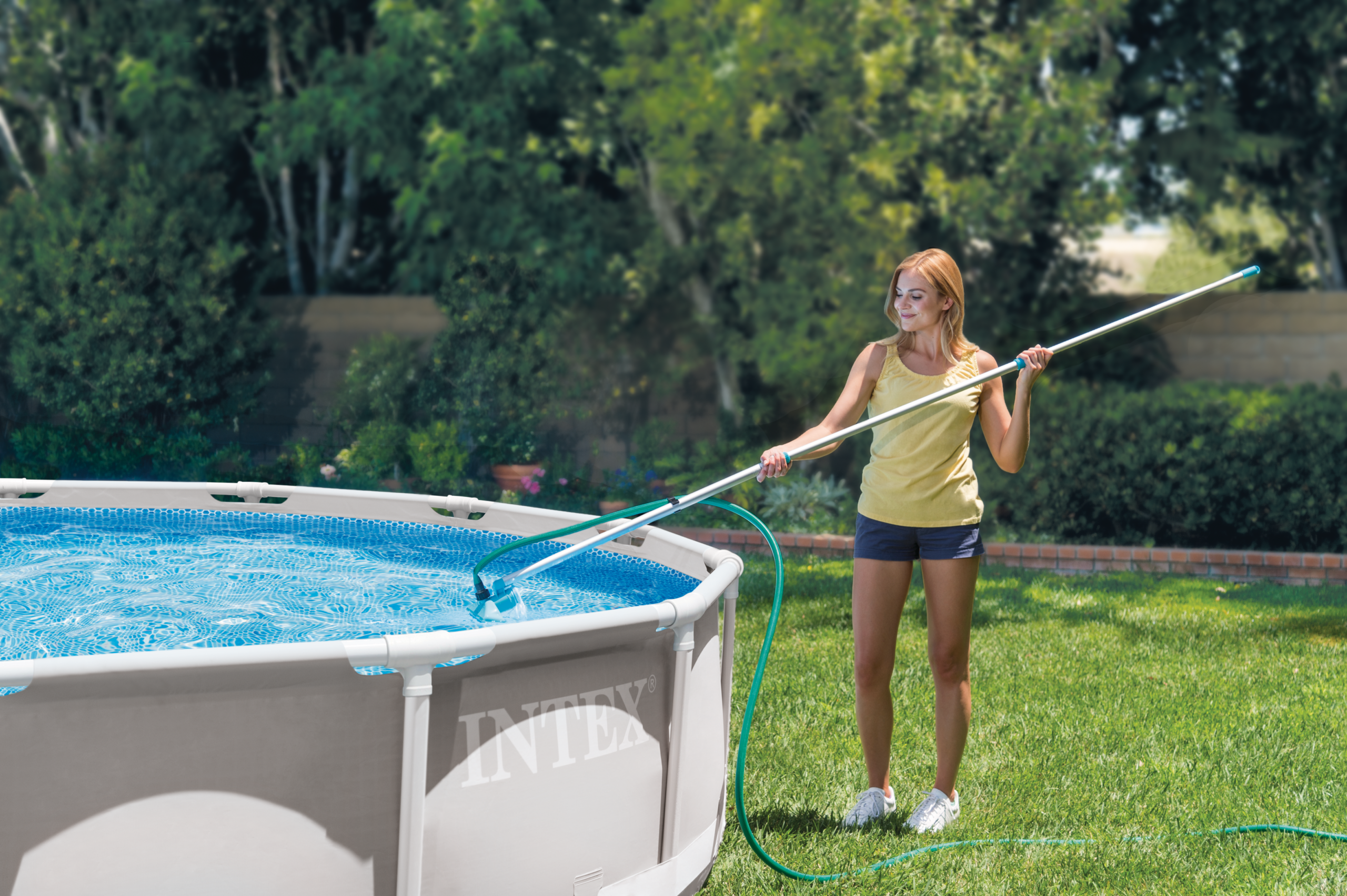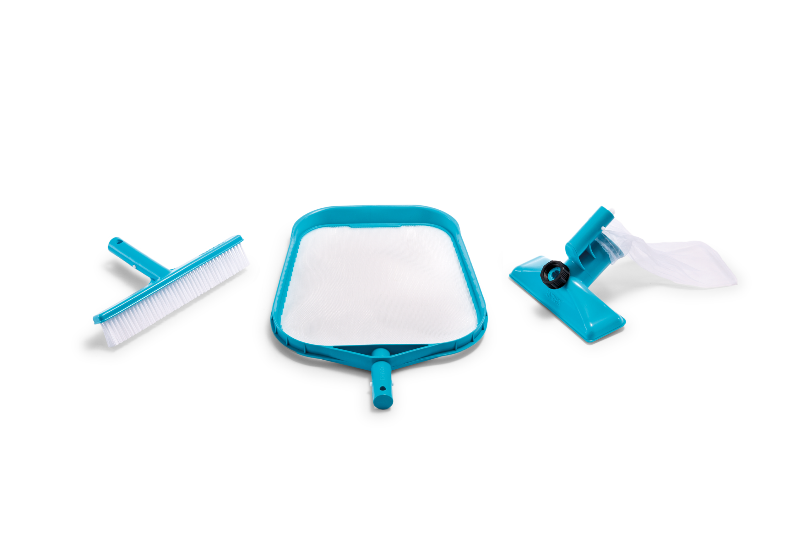Osnovni komplet za čišćenje Intex bazena idealan je za održavanje vašeg bazena čistim i spremnim za uživanje u vodi. Komplet sadrži izdržljivu mrežicu za skupljanje lišća, četku za zidove i glavu za usisavanje. Glava za usisavanje sa višekratnom vrećicom za otpatke koristi se uz povezivanje na baštensko crevo. Četka za zidove efikasno uklanja alge i prljavštinu sa zidova i dna bazena.